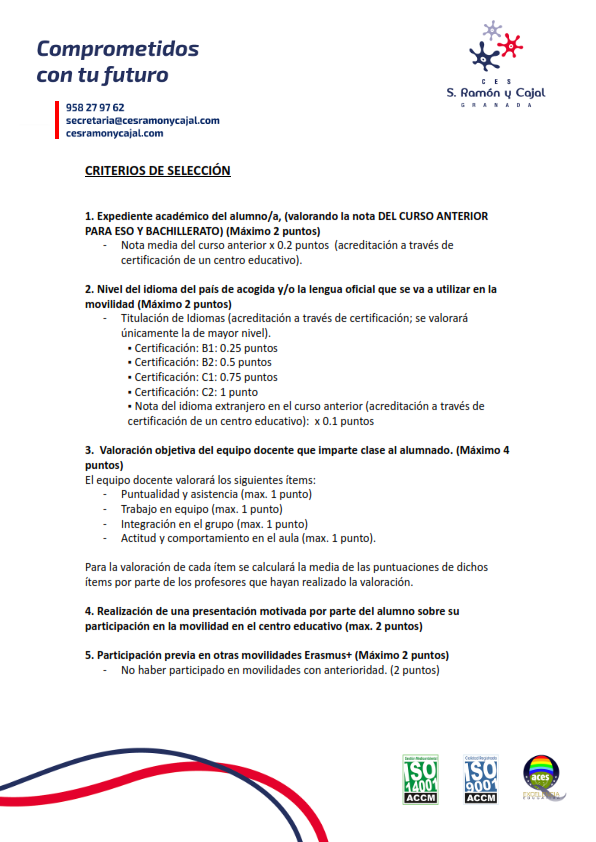 A continuación os tenéis los criterios de selección que se tendrán en cuenta para elaborar el baremo del que finalmente saldrán los alumnos y alumnas que vivirán su experiencia Erasmus los próximos meses.